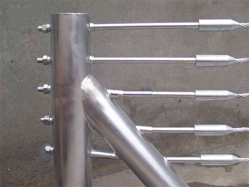 B級(jí)纜索護(hù)欄也叫五索纜索護(hù)欄,是最常用的一種纜索護(hù)欄,采用5根具有較高強(qiáng)度和抗腐性能優(yōu)良的3x7鍍鋅/右擰構(gòu)造鋼索,鋼索固定方式有兩種:別針固定方式(方便安裝),U型卡固定方式。