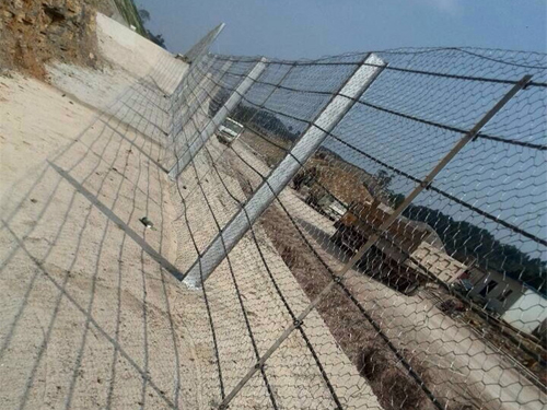 鋼性防護網(wǎng)能量等級分為25KJ 50KJ 100KJ三種以適合不同情況下的落石防護需要,鋼性防護網(wǎng)每段長度范圍一般為30-60M,為了更好的發(fā)揮鋼絲繩的柔性,在平坦地方可以盡量拉長(最長可達80M),如果不到30M,由于鋼絲繩的變形量將減小,鋼絲繩吸收的能量也會減小,需要考慮選擇高一等級防護能量的產(chǎn)品,或者提高消能裝置的防護能量,剛性防護網(wǎng)系統(tǒng)高度一般為1.8和2.5M高。